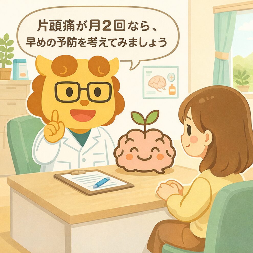 月2〜4回の片頭痛でも予防を検討してよいと提案しました。