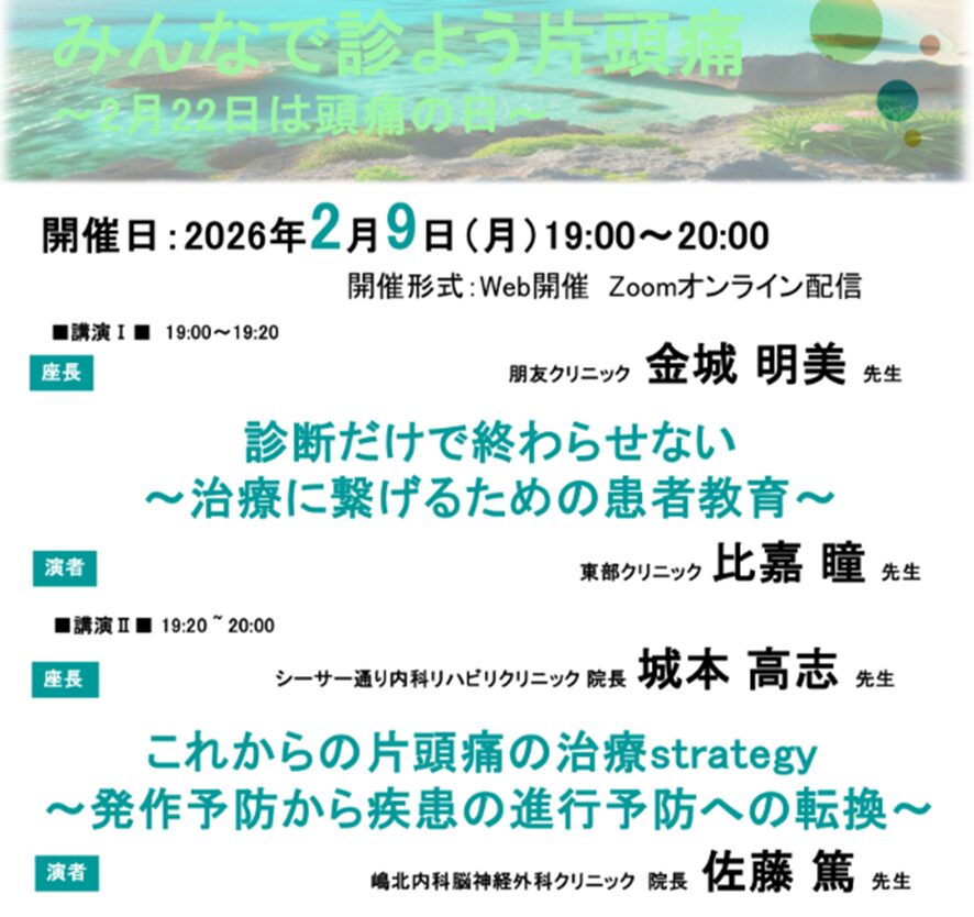 2月9日、「みんなで診よう片頭痛」と題した講演会が開催され、